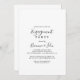 Esta sencilla invitación minimalista a la fiesta de compromiso es perfecta para un evento moderno. El diseño, sencillo y elegante, presenta una tipografía de escritura clásica y elegante en blanco y negro.