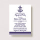 ¡Estas invitaciones a la fiesta de compromiso náutico o a la ducha con un monólogo de la marina serán la invitación perfecta para cualquier pareja feliz! El diseño incluye dos franjas azul marino con un ancla monocasco. Estas invitaciones pueden ser personalizadas para su ocasión especial y harían la invitación perfecta para cualquier boda en la playa náutica, ducha de novias, fiesta de compromiso, fiesta de cumpleaños y mucho, mucho más.