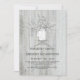 La rústica y elegante invitación a la fiesta de compromiso de madera blanca incluye luces de cuerda, frasco de albañil con etiquetas e iniciales, y flores del aliento del bebé.