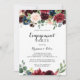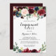 Esta invitación a la fiesta de compromiso de caligrafía rústica y moderna de otoño es perfecta para una simple celebración de compromiso. El diseño es de color burdeos, rojo, marino, azul y ondulante radiante y flores elegantes pintadas a mano, inspirando la belleza natural.
