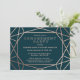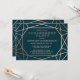 Una invitación moderna y contemporánea a la fiesta de compromiso de invierno, con un patrón geométrico rosa de oro "falso Relieve metalizado" sobre un fondo turquesa oscuro. Todos tus detalles están escritos en un bonito y moderno error. Yo sí ofrezco un servicio de personalización gratuito, si tiene alguna solicitud especial, por favor envíeme un correo electrónico a: margherita@bluebirdinvites.com El franqueo de EE.UU. correspondiente está disponible aquí: http://www.zazzle.com/collections/geometric_winter_wedding_set-119231006408651896 Pulsando sobre el botón del personalizar puede acceder a las herramientas de edición y cambiar el color de fondo, el tipo y mucho más Nota ____________________________________________________________________________________________________________________________________________ El color de cobre metálico no es Relieve metalizado real, es sólo un efecto de color __________________________________________________________________________