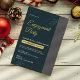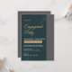 Celebra tu historia de amor con esta invitación a la Fiesta de compromiso verde azul elegante, diseñada con tonos esmeraldos profundos, acentos de escritura dorada y un diseño moderno y limpio. Perfecto para una celebración elegante, esta invitación marca el tono para un evento de compromiso inolvidable. Características: Elegante guión combinado con modernos tipos de letra serif Lujoso fondo verde marino con fecha realzada con oro Detalles listos para editar, incluida la sección RSVP