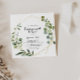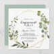 Esta invitación geométrica a la fiesta de compromiso verde tropical de oro es perfecta para una simple celebración de compromiso. El diseño está decorado con hermosas hojas verdes pintadas a mano, adornando un marco geométrico dorado.