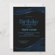 Invite a sus amigos y seres queridos a celebrar su cumpleaños con esta elegante invitación de fiesta de cumpleaños en negro y azul.