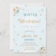 Invitación de Winter Wonderland en azul claro y oro. Pancartas, juegos, decoraciones y más disponibles en mi tienda.