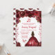 Esta elegante y glamorosa invitación para el cumpleaños cuenta con una hermosa princesa con el pelo castaño y piel clara en un vestido de bola rojo burdeos. El texto combina el guión manuscrito y las fuentes sans serif modernas para un aspecto elegante y sofisticado. Los arreglos florales, la mariposa y el confetti crean la combinación perfecta entre rústico y moda. Gráficos de www.etsy.com/uk/shop/SunflowerDayLove