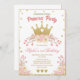 Invitación al cumpleaños de la princesa, plantilla, invitación a princesa de oro, flores rosadas, instante