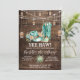 Plantilla verde verde azulada editable Western Cowgirl Birthday Invitation. Celebra la tradicional mayoría de edad con nuestra Rustic Western Birthday Party Invitation, perfecta para una celebración con temática de país. Esta invitación mezcla la calidez de un fondo rústico de madera con el encanto de los acentos florales y las luces de cuerda, culminando en un diseño tan único como hermoso.