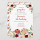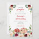 Esta encantadora y caprichosa invitación a la fiesta de cumpleaños acuarela incluye calabazas rojas y rosas borgoñas y arreglos florales. El texto combina guiones manuscritos y sans serif para un estilo elegante y moderno. Esto es perfecto para una fiesta de cumpleaños de otoño. Gráficos de www.etsy.com/uk/shop/SunflowerDayLove