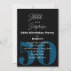 Crea una invitación sorpresa para tu marido o novio. Papel negro. con números azul oscuro para su edad como fondo. Personalizar gris claro de texto impreso línea por línea según sea necesario. En la parte superior, "Shhhh... es una sorpresa" con texto en negrita para su edad y nombre. Toda la información del fiesta se agrega en un párrafo. Un estilo moderno y minimalista que funcionará para hombres de todas las edades.