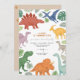 Prepárate para pisotear, chomp y rugir con esta vibrante invitación de cumpleaños temática a los dinosaurios! Con una disposición divertida de dinos dibujados a mano en todos los colores del arco iris, además de exuberantes hojas de selva sobre un fondo blanco moderno, esta invitación es perfecta para el gran día de tu paleontólogo. Ideal para los niños amantes del dino, este diseño da un giro educativo y divertido con encantadores favoritos ilustrados como el T-Rex, el Stegosaurus, el Triceratops y más. Ya sea que le estés tirando un golpe a la jungla Jurásica o un fiesta de parque prehistórico, esta invitación prepara el escenario para un momento ruidoso.