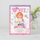 Invitación a la fiesta de cumpleaños del Chica del pelo rojo de ojos marrones - definitivamente el gato está fuera de la bolsa en este. La invitación de este chica para el cumpleaños de veterinaria es la medicina correcta para darle a tu pequeña la celebración que se merece. Presentando a una joven veterana ocupada rodeada de todos sus amigables pacientes animales. No hace falta un chequeo, la invitación de este chica por su cumpleaños, hará que el día sea inolvidable.
