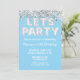 Invitación Partido de cumpleaños del Purpurina Light Blue Sil