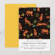 Un diseño moderno con un elegante esquema de color negro, verde, naranja y amarillo y tipografía de guiones. En la parte delantera de estas invitaciones, hay un patrón elegante de diferentes tigres, elementos de doodle y hojas tropicales. Las cartas se revierten a un color amarillo brillante. Edite el texto de los cuadros de plantilla en personalizar.