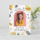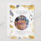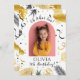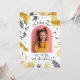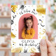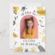 Celebra un cumpleaños especial de chica en estilo dorado con este alegre y moderno diseño fiesta! Con un niño alegre en un suave marco de arco, rodeado de hojas de oro resplandecientes, confetti negro y reboques juguetones, esta plantilla editable le da diversión y festividad a su celebración.