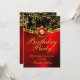 Invitación Partido de cumpleaños exótico Red Black Gold Damas