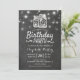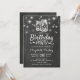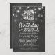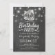 Invitación a la fiesta de cumpleaños - Elegante Mason Jar y String Lights en el fondo de la pizarra negra de Grunge. Un diseño perfecto para tu gran día. ¡Todo el estilo de texto, colores, tamaños se pueden modificar para adaptarlo a sus necesidades!