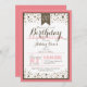 Invitación Partido de cumpleaños moderno Salmon Pink, White y