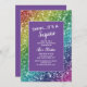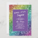 Invitación a la fiesta de cumpleaños sorpresa del personalizado Purpurinoso arcoiris y morado.