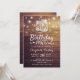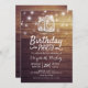 Invitación a la fiesta de cumpleaños - Elegante Mason Jar y String Lights sobre el fondo rústico de la madera. Un diseño perfecto para tu gran día. ¡Todo el estilo de texto, colores, tamaños se pueden modificar para adaptarlo a sus necesidades!