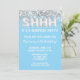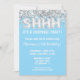 Invitación a la fiesta de cumpleaños sorpresa del Purpurina de plata azul claro para cualquier edad con escritura de escritura moderna y globos de Relieve metalizado divertidos.