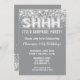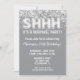 Invitación a la fiesta de cumpleaños sorpresa del Purpurina de plata gris para cualquier edad con escritura de escritura moderna y globos de Relieve metalizado divertidos.