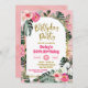 Invitación Partido de Cumpleaños Tropical de Monstera Rosa