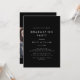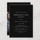 Esta moda, la invitación a una fiesta de graduación doble de foto negra oscura, es perfecta para un fiesta moderno al aire libre. El diseño es sencillo y oscuro, con una tipografía minimalista clásica en blanco y negro y un ambiente elegante y sofisticado. Personalizable de cualquier color. Tira un fiesta para dos graduados. Personaliza la parte de atrás con una foto de cada graduado y su escuela.