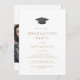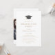 Esta invitación a una fiesta de graduación doble con una gorra de moda dorada es perfecta para un fiesta moderno al aire libre. El diseño es sencillo y presenta una tipografía clásica de oro blanco y amarillo con un gorra de graduación de acuarela en negro y oro. Tira un fiesta para dos graduados. Personaliza la parte de atrás con una foto de cada graduado y su escuela.