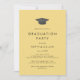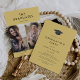Esta invitación a una fiesta de graduación doble con una gorra de moda amarilla es perfecta para un fiesta moderno al aire libre. El diseño es sencillo, con una tipografía clásica de color amarillo dorado y negro con un gorra de graduación de acuarela de color negro y dorado. Tira un fiesta para dos graduados. Personaliza la parte de atrás con una foto de cada graduado y su escuela.