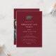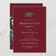 Esta invitación a una fiesta de graduación doble con una gorra roja de moda es perfecta para un fiesta moderno al aire libre. El diseño es sencillo y presenta una tipografía clásica de color burdeos oscuro y blanco con un gorra de graduación de acuarela de color negro y oro. Tira un fiesta para dos graduados. Personaliza la parte de atrás con una foto de cada graduado y su escuela.