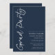 Esta es una invitación minimalista y moderna a la fiesta de graduación. Es un diseño de escritura manuscrita simple y elegante en azul y blanco clásico. Póngase en contacto con el diseñador para cualquier consulta sobre este diseño.