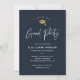 Sencilla invitación del Partido de Graduación Azul de la Marina con elegante gorra de Relieve metalizado dorado y tipografía minimalista. Haga clic en el botón de edición para personalizar de este diseño. Añade fácilmente una foto al fondo.