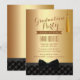Clásicas Invitaciones del Partido de Graduación del Relieve metalizado dorado de Bow Negro.