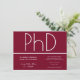 Una invitación para una fiesta de graduación de doctorado. Esta invitación minimalista es borgoña y blanca. Todas las palabras y ambos colores se pueden personalizar.