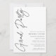Se trata de una invitación moderna y de moda a la fiesta de graduación. Es un diseño de escritura manuscrita simple, elegante y elegante en blanco y negro clásico. Póngase en contacto con el diseñador para cualquier consulta sobre este diseño.