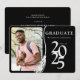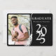 Esta moderna y elegante invitación a graduarse en blanco y negro presenta una foto del graduado y puede ser personalizada para complementar sus colores escolares o su tema de graduación. Girar la tarjeta y utilizar las herramientas de diseño para actualizarla con el texto. También disponible como descarga digital.