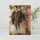 Texto de Grunge, invitación de graduación del niño e invitación a la fiesta. Añadir una foto vertical para llenar la parte delantera de las tarjetas de 5x7 pulgadas. El texto "Grad" en el tipo de letra grunge tiene un efecto de sombra que destaca en los colores de las fotos oscuros o claros. Añadir una foto horizontal al dorso de la tarjeta - mi muestra es en blanco y negro, pero la tuya puede ser color. Llenará la parte superior. Añade texto negro impreso bajo su nombre, información de la escuela e información del fiesta. También disponible como descarga instantánea.