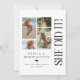 Celebra un graduado con esta mínima tarjeta de invitación a la fiesta de graduación. Con un diseño simple con 4 fotografías del jardín y el texto que dice '¡ELLA LO HIZO!'. La plantilla única añade un toque de elegancia, convirtiéndolo en la elección perfecta para un fiesta de bachillerato o universitario. El diseño de doble cara permite un amplio espacio para incluir todos los detalles necesarios del evento. Haga que su celebración de graduación sea inolvidable con esta impresionante tarjeta de invitación.