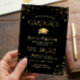Invitación Partido de Graduación de Confetti de Oro Negro