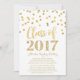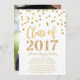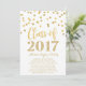 Clase de tarjeta de personalizado de la invitación a la fiesta de graduación de 2017 en el glamoroso efecto purpurina de oro, patrón de confetti y texto moderno con letras a mano.