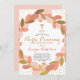 La corona festiva presenta hojas de purpurina rosa y oro fino y confetti divertido. No dude en ponerse en contacto con el diseñador para solicitar elementos coincidentes en info@lemontreecards.com