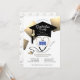 Difunde la palabra para planes de fiesta con estas invitaciones de graduación de enfermeras de moda. Este diseño presenta texto de personalizable, un ilustracion negro de tapón de graduación con falsos acentos cuadrados purpurinoso de impresión dorada y un estetoscopio dorado y negro sobre un fondo blanco. La espalda tiene un patrón estetoscopio en un fondo blanco. Los colores de este diseño son blanco, negro, gris, dorado y azul. Utilice el botón de personalización para actualizar la información y, a continuación, seleccione las opciones de diseño de impresión y descarga. Diseño de Ms_Jade.