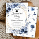 Invitación a la fiesta de graduación de las flores azules de la marina acuarela. Elementos coincidentes disponibles.