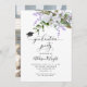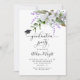 Elegante tarjeta de presentación de invitación para fiesta de graduación floral con ilustracion acuarela de lirios tigres blancos y flores de lavanda. También hay un ilustracion de un gorro de graduación. Puedes añadir la foto del graduado en la parte posterior de la tarjeta. Excelente tanto para graduados de secundaria como universitarios.