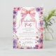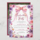 Invitación a la fiesta de graduación de fotos de Floral Pink Bow Coquette