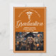 Esta invitación a la fiesta de graduación de la Facultad de Medicina de este personalizado naranja para una enfermera o médico presenta tipografía blanca de alta calidad bajo un médico caduceus y su nombre universitario para la clase de 2025. Personalizar con tu año de graduación bajo la elegante caligrafía para una gran tarjeta de graduado universitario personalizada.