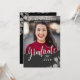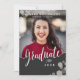 Invitación a la fiesta de graduación fotográfica con la foto del graduado en la parte delantera y una segunda foto de graduado en la parte trasera. Las formas de graduado y hexágono de brillo plateado hacen que esta invitación a la graduación sea elegante y moda. Celebra tu graduación con estilo con estas elegantes invitaciones a la graduación.