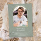 Con un arco dorado de moda sobre un fondo verde sabio, esta elegante invitación a una fiesta de graduación puede ser personalizada con su foto especial de graduación. Diseñado por Thisisnotme©