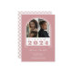 Invitación a la fiesta de graduación de Arco Blanco Rosado Retro con 2 fotos. Perfecto para una fiesta de graduación combinada. Todos los colores son personalizables mediante la herramienta Editar. © Kimbellished, LLC